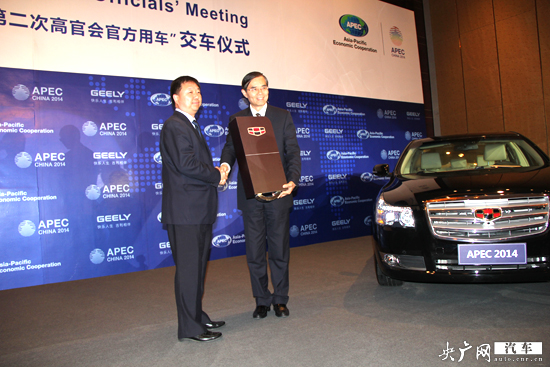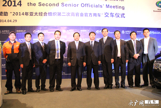 2014年亞太經(jīng)合組織第二次高官會(huì)將于5月份在青島召開(kāi),4月29日,吉利汽車(chē)正式向2014年APEC會(huì)議青島市籌委會(huì)交付高官會(huì)官方指定用車(chē),而2014年APEC高官會(huì)議第一次在寧波召開(kāi)時(shí)也選擇了吉利帝豪轎車(chē)作為官方用車(chē)。
