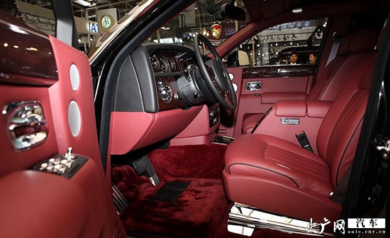內(nèi)飾配色同樣豐富;真皮座椅 頂篷線 支柱和車門內(nèi)側(cè)都大量運用櫻桃紅與貝殼色搭配;專門定制的櫻桃紅羊羔毛地毯營造出尊享寵愛的內(nèi)部環(huán)境。