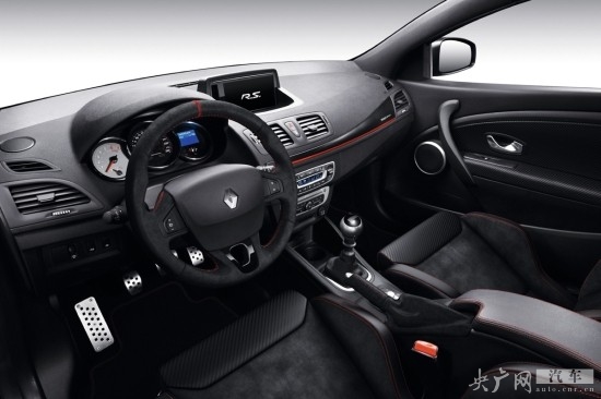 梅甘娜R.S. 275 Trophy內(nèi)飾以大量使用的麂皮材質(zhì)、與紅色車縫線來突顯其性能的味道,碳纖維排氣尾喉以及選配的19寸黑色Speedline Turini輪圈,都源自于梅甘娜的競(jìng)技專用車型,這也使得這款車更具賽車風(fēng)味。