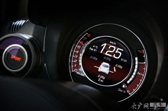 新款菲亞特500 Abarth版本采用了全新的儀表盤和中控臺(tái)。在常規(guī)狀態(tài)下,駕駛員可以通過這個(gè)顯示屏了解車輛速度、巡航里程和油耗等信息。當(dāng)車輛切換到運(yùn)動(dòng)模式時(shí),新的7英寸TFT顯示器會(huì)在顏色和顯示內(nèi)容上有著明顯的變化。另外,廠家針對杯架也進(jìn)行了從新設(shè)計(jì),并添加了新的USB端口(集成于收音機(jī))。