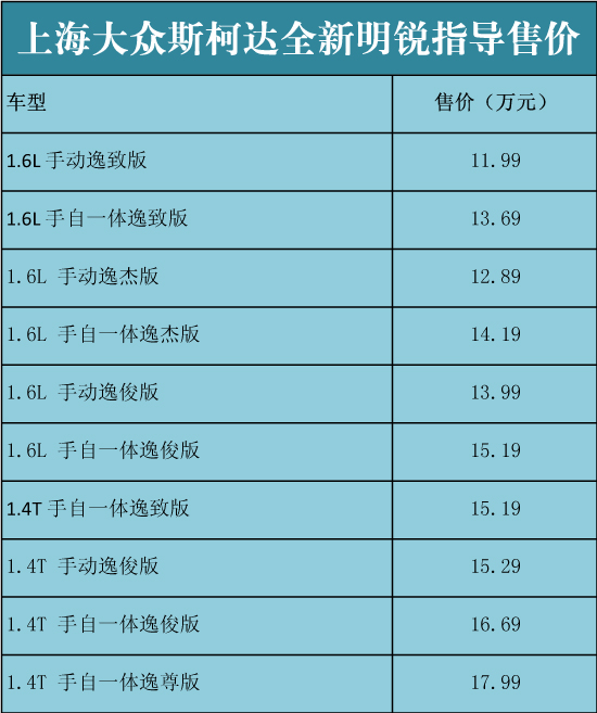 斯柯達(dá)新明銳上市 售11.99-17.99萬