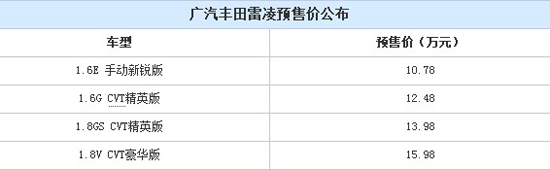 廣汽豐田雷凌發(fā)布 預售10.78-15.98萬