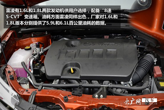 配備“8速S-CVT”的雷凌在油耗方面同樣出色,廠家對1.6L和1.8L版本分別提供了5.9L和6.1L百公里油耗的數(shù)據(jù)。