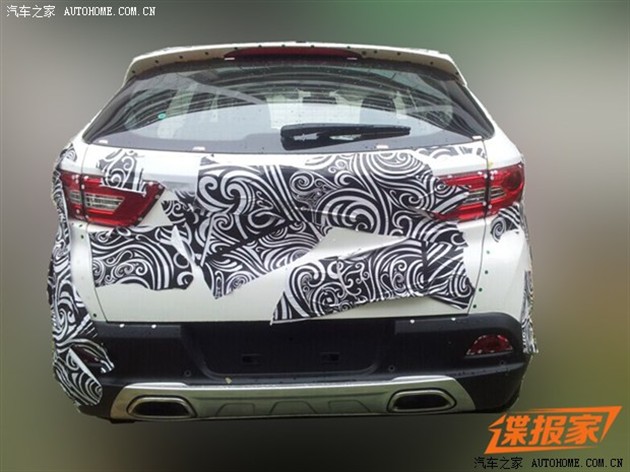 從諜照來看,東南這款全新SUV前臉進氣格柵采用特別的弧形裝飾條設(shè)計,并帶有大面積的鍍鉻裝飾,下進氣口則為一體式造型。車尾方面,新車整體線條飽滿,雙邊共雙出的排氣管很顯動感,而尾燈也使用棱角分明的樣式。