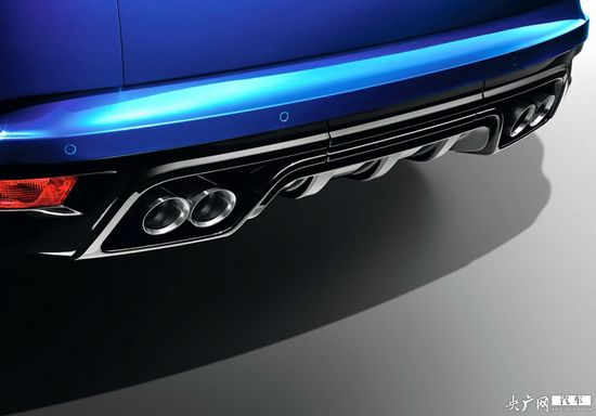 車(chē)頂位置配備了一個(gè)小型擾流板,車(chē)尾采用了雙邊共四出排氣設(shè)計(jì)和全新造型的多輻輪圈,并配有Brembo的藍(lán)色制動(dòng)卡鉗。
