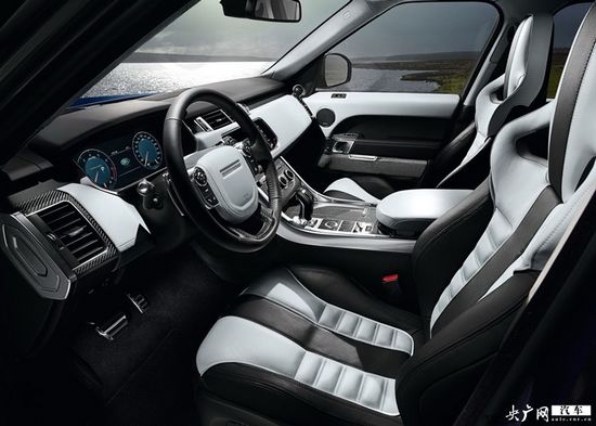 內(nèi)飾部分,新車(chē)內(nèi)部造型與攬勝運(yùn)動(dòng)版基本保持一致,采用黑白相搭配的配色方案,中控臺(tái)采用了碳纖維飾板進(jìn)行裝飾,并配備印有SVR專屬標(biāo)識(shí)的運(yùn)動(dòng)座椅。