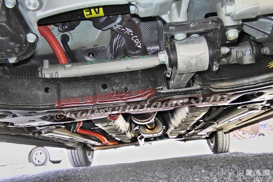 從底盤部分的諜照來看,這套系統(tǒng)的電池被安裝在后排座椅下方的底盤上,通過一條橙色的高壓電纜將電流送到發(fā)動機艙中。
