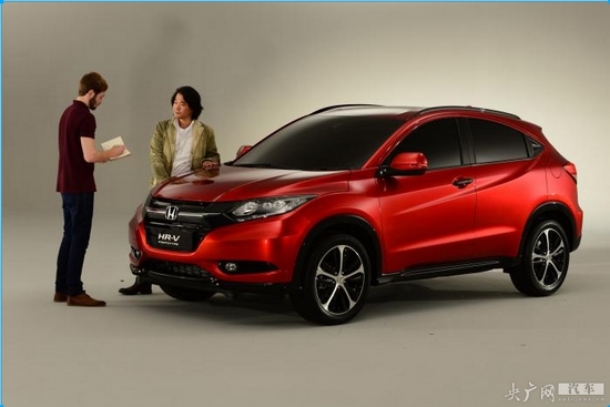 從官圖中可以看出,量產版的HR-V與日本本土的VEZEL非常接近,并沒有做出過多的本地化修改,基本上就是將2013年北美車展上的那款Urban SUV概念車的造型照搬了過來。其前臉與CR-V相比,還是能看出家族設計傳承的痕跡,但在細節(jié)處也能凸顯更年輕化的設計取向。