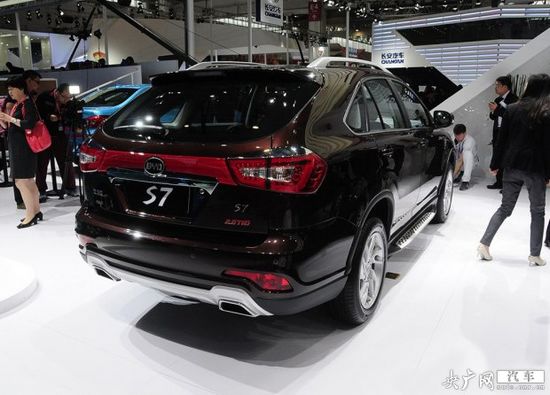 據(jù)悉,比亞迪S7定位為中型SUV,前臉采用全新的進(jìn)氣格柵,并配以鍍鉻飾條,前大燈組造型動(dòng)感并融入了LED光源。車尾造型非常硬派,車頂處裝配有小型后擾流板,新車采用雙邊雙出排氣布局。