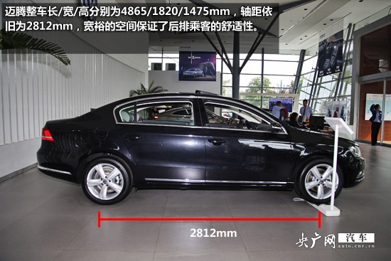 邁騰整車(chē)長(zhǎng)/寬/高分別為4865/1820/1475mm,軸距依舊為2812mm,寬裕的空間保證了后排乘客的舒適性。
