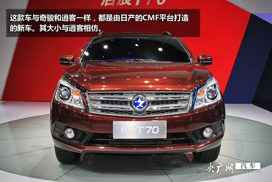 造型方面,啟辰T70并沒有沿用以前的老做法,而是力爭原創(chuàng),這款車型上逍客的印記已經不再那樣明顯,進氣格柵,頭燈都經過重新設計,整體搭配比較合理,從這點也可以看到啟辰自身的進步。