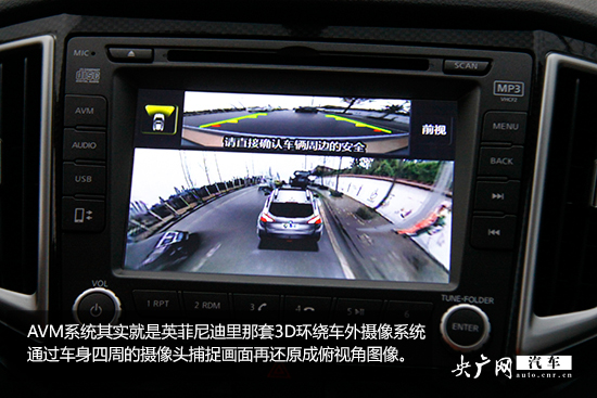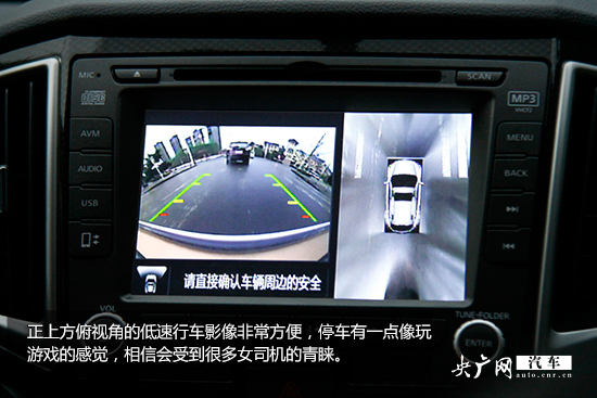 雖然內(nèi)飾設(shè)計(jì)樸實(shí),但絕對(duì)稱得上內(nèi)有乾坤。亮點(diǎn)就在于日產(chǎn)的亮點(diǎn)技術(shù)AVM系統(tǒng),也就是360度俯視角泊車影像系統(tǒng)。沒錯(cuò)這套系統(tǒng)我們在英菲尼迪的SUV車型上經(jīng)常見到,它通過全車四周的攝像頭將車外影像合成為一個(gè)畫面,相當(dāng)于從車頂俯瞰車身,大大提升了駕駛員對(duì)于狹小空間通過性的判斷。這是一個(gè)相當(dāng)實(shí)用的設(shè)計(jì),不過全車系配置目前還沒有公布,AVM系統(tǒng)配備到哪些價(jià)位的車型還不得而知。