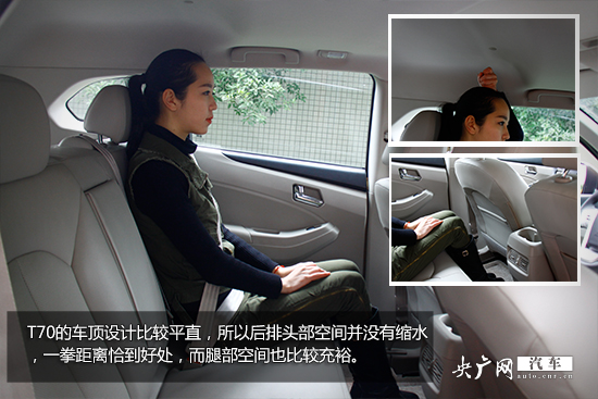 日產(chǎn)在空間設(shè)計(jì)上一直有獨(dú)到之處,2630mm的軸距其實(shí)是給了啟辰T70很大的發(fā)揮空間。所以坐入車內(nèi),整體感覺很好。這個(gè)軸距和逍客一樣,但實(shí)際車內(nèi)空間特別是后排表現(xiàn)要好于逍客。
