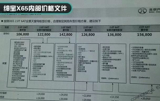 紳寶X65疑似售價(jià)曝光 10.68-15.68萬元