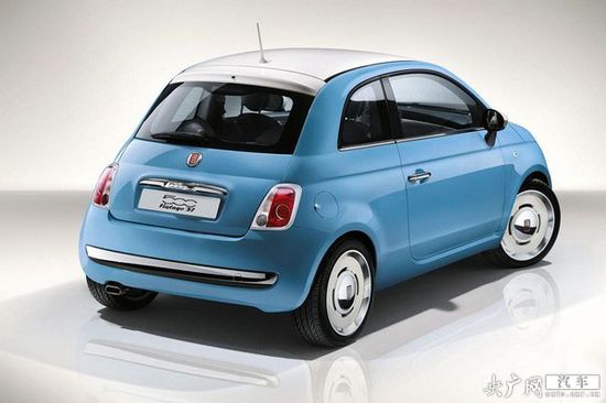 外觀方面,菲亞特500 Vintage 57采用復(fù)古的藍白雙色涂裝。輪轂樣式獨特,新車車身前后的LOGO采用了長方形的舊款設(shè)計。