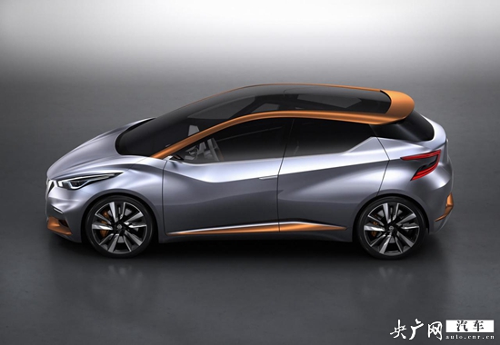 外形方面,概念車采用了日產(chǎn)全新的家族臉譜,黑色的網(wǎng)狀格柵中間鑲嵌了日產(chǎn)的LOGO,還采用了鍍鉻裝飾;纖長的前大燈非常搶眼,使得整個前臉變得神采奕奕,內(nèi)部融入了LED光源。整車線條流暢、犀利,運動感強烈。
