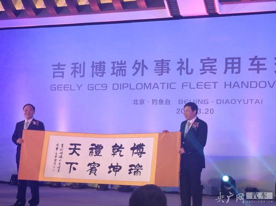 3月20日,北京 今天下午,首批20輛吉利博瑞外事禮賓用車交付儀式在北京釣魚臺國賓館舉行,外交部部長助理錢洪山和吉利控股集團(tuán)董事長李書福作為雙方代表完成了交付儀式。比利時駐華大使馬懷宇,烏拉圭駐華大使羅薩里奧·波特利,白俄羅斯駐華公使伊格爾,英國駐華公使魏林等外交使節(jié)也參加了交付儀式。