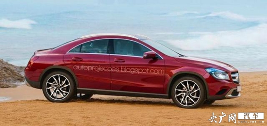 外觀方面,從效果圖來看,新車在奔馳GLA基礎(chǔ)上,離地間隙變高,增加了更多的跨界元素,包括銀色行李架,前后保險杠上的銀色護板。
