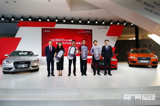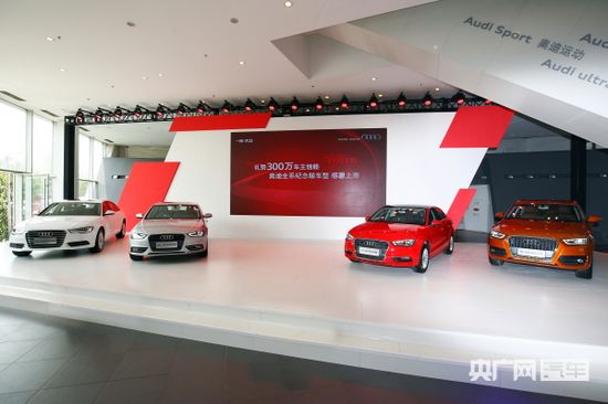 2015年5月21日,一汽-大眾奧迪正式宣布:奧迪品牌在華累計銷量突破300萬輛。為答謝用戶而打造的四款“300萬紀(jì)念版”車型——奧迪A6L 300萬紀(jì)念版、奧迪A4L 300萬紀(jì)念版、奧迪A3 300萬紀(jì)念版和奧迪Q3 300萬紀(jì)念版,即日起正式上市。