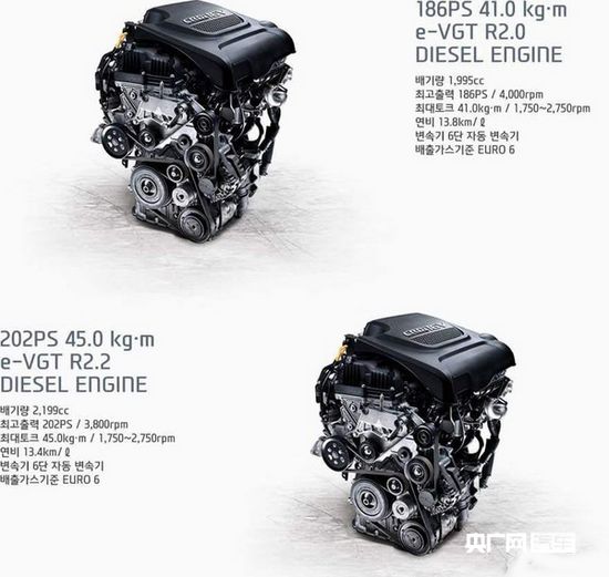 動力系統(tǒng)方面,韓國方面新車將推出5款車型,提供兩款柴油動力,2.0T版本最大輸出功率為186馬力,2.2T最大輸出功率為202馬力,兩款發(fā)動機都將滿足歐六排放標準。