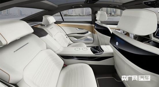 內(nèi)飾方面,概念車采用了灰白雙色拼接的內(nèi)飾,并輔以棕色飾板。此外,車內(nèi)配備了 多功能方向盤,中控臺(tái)以及儀表盤均采用了大尺寸液晶屏,搭配集合型檔桿。另外,為了提高舒適性,概念車后排采用了兩個(gè)獨(dú)立后排座椅。