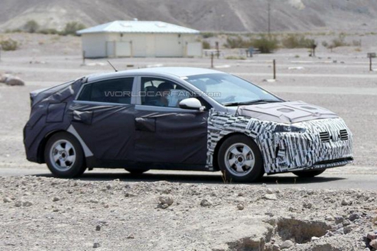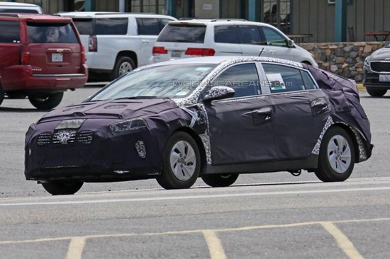 從諜照上看,該車(chē)采用低風(fēng)阻的動(dòng)感外形設(shè)計(jì),提高了行駛中的燃油經(jīng)濟(jì)性,盡管該車(chē)高度偽裝,但是依然能看到細(xì)長(zhǎng)的前大燈和兩側(cè)寬的格柵設(shè)計(jì);向上的車(chē)身腰線設(shè)計(jì)和圓潤(rùn)的車(chē)頂,再配合后擾流尾翼,看上去十分動(dòng)感。該車(chē)的插電口位于駕駛席前擋泥板附近。