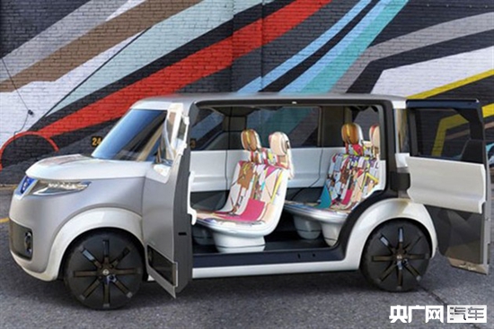 日產(chǎn)Teatro for Dayz概念車(chē)采用了"對(duì)開(kāi)門(mén)"設(shè)計(jì),乘客上下車(chē)更加方便,同時(shí)車(chē)輛內(nèi)部使用了大面積液晶屏,其中座椅可以根據(jù)車(chē)主的喜好自由改變配色,個(gè)性十足。