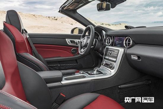 內(nèi)飾方面改進不小,車內(nèi)配備三幅式運動方向盤、炮筒儀表、圓形空調(diào)出風(fēng)口、亞光面板以及運動座椅打造了非常運動的內(nèi)飾氛圍?梢钥闯,SLC并沒有采用奔馳慣用的懷擋設(shè)計,擋把在傳統(tǒng)的中控臺下方位置。AMG版本則搭配了Alcantara包裹的方向盤、碳纖維裝飾的中控臺以及紅色縫線的運動座椅等。