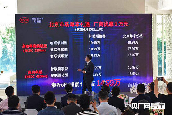 央廣網(wǎng)北京5月16日消息(記者葛成)今天,比亞迪秦Pro EV超能版在北京正式上市,新車根據(jù)電池容量和配置的不同共推出了六款車型,售價為24.89-29.89萬元(補貼后售價為14.99-19.99萬元)。除了全國版的車型外,官方還專為北京市場推出了一款秦Pro EV超能北京版,補貼后的售價為14.99萬元。