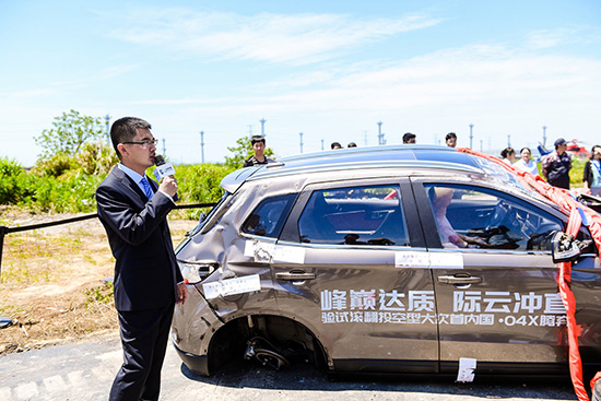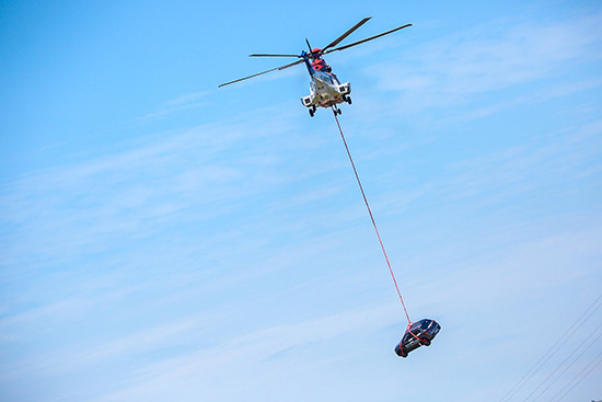 上午十時許,奔騰X40被直升飛機吊起,空投翻滾試驗開始。隨后車輛被直升飛機以120KM/H的速度從空中直接拋向地面,在地面上不斷翻滾,發(fā)生巨大聲響和激烈碰撞。在經(jīng)歷了嚴(yán)重的撞擊、翻滾后,奔騰X40經(jīng)受住了考驗,車身無明顯變形,車內(nèi)試驗假人沒有受到“傷害”。
