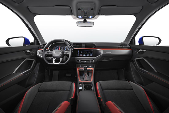 內(nèi)飾設(shè)計方面,作為一輛A級SUV,奧迪Q3保持簡潔的設(shè)計理念,并沒有跟人紛繁復雜的感覺。全系標配全液晶儀表盤和MMI中控觸摸屏的聯(lián)動設(shè)計,儀表盤的彩色數(shù)字儀表將發(fā)動機轉(zhuǎn)速、車速及其他行車信息以明亮、清晰的全彩界面顯示其上。高配車型的12.3英寸奧迪虛擬駕駛座艙更可以在儀表盤顯示完整導航地圖,令重要的行車信息一覽無余。