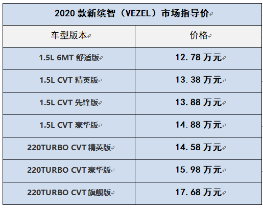 2020款新繽智(VEZEL)領(lǐng)潮登場 高價比領(lǐng)先同級