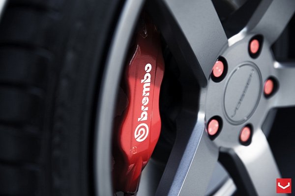 并沒(méi)有對(duì)車身外觀進(jìn)行改動(dòng),也沒(méi)有碳纖維空氣動(dòng)力學(xué)套件,只是選用了自定義的新輪轂。這套CV3輪輞選擇簡(jiǎn)單的石墨黑設(shè)計(jì),采用了內(nèi)凹的形狀和簡(jiǎn)單的輻條。還換上了醒目的紅色Brembo剎車套件。