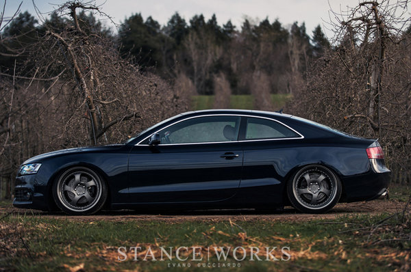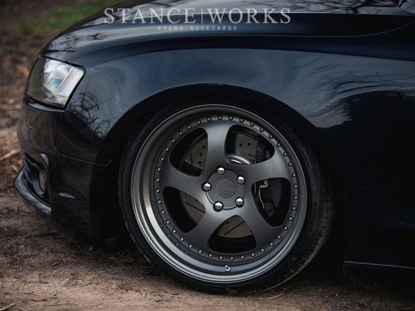 把原本的輪轂換掉,配上rotiform五幅19寸寬邊輪轂與原本車身側面一條波浪式的腰線更加能襯托出A5那優(yōu)雅的氣質,體現(xiàn)出A5在運動方面的強勢;雖然只是簡簡單單的一個輪轂,就使整體感覺上升了一個檔次,那一圈鉚釘?shù)脑O計,成為整車的亮點,淋漓盡致的展現(xiàn)出了這輛車那不妥協(xié)的精神。