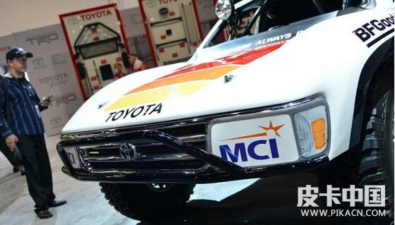 顯然,它完全是按照豐田越野賽車的標(biāo)準(zhǔn)來進(jìn)行改裝的。它的車身被加高了很多,同時(shí)原車的前后保險(xiǎn)杠都被拆掉,取而代之的是鋼鐵防撞架,從而讓車輛的通過性以及安全性得到大幅度的提升。