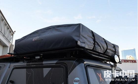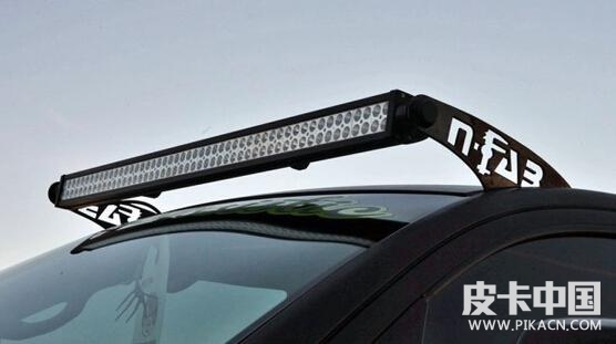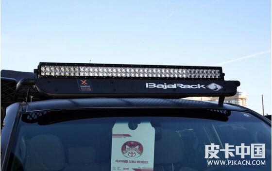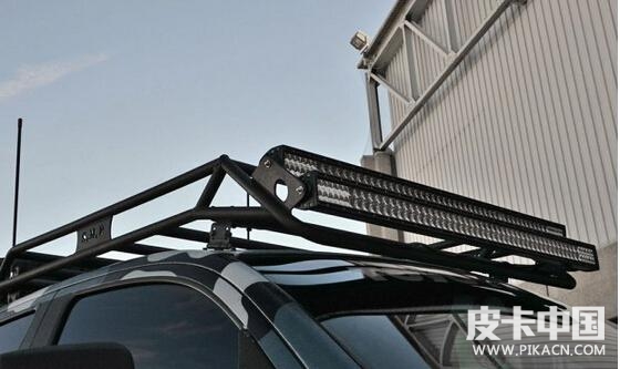 它的車頂裝備了S.M.P的行李架,款式也是非常粗獷。除此以外,在行李架上我們還可以看到兩排LED燈,晚上照明完全不是問題。