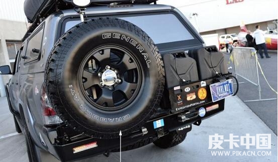 后保險(xiǎn)杠同樣來自于ARB,在車尾處可以看到它準(zhǔn)備了不少長途旅行的裝備。