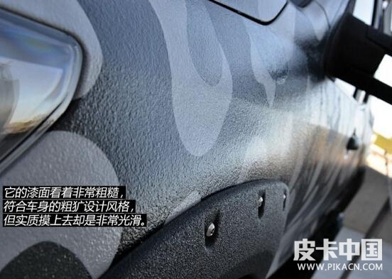 它的漆面看著非常粗糙,符合車身的粗獷設(shè)計(jì)風(fēng)格,但實(shí)質(zhì)摸上去卻是非常光滑。