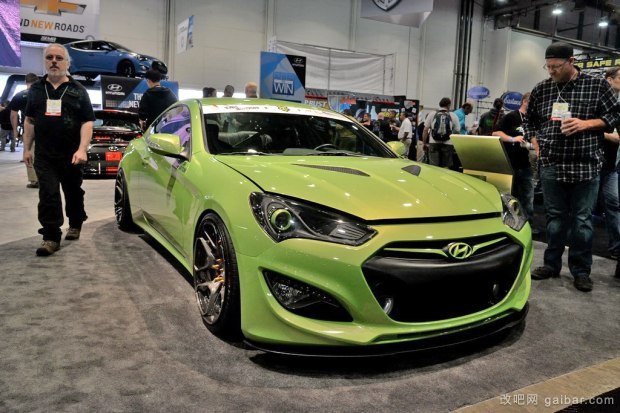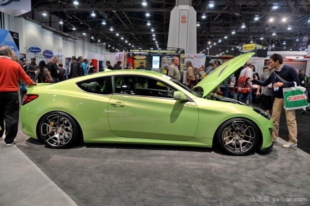 【改吧網(wǎng) 案例】在2015 SEMA改裝展上,我們看到了兩輛勞恩斯-酷派改裝案例。首先綠色的這六缸發(fā)動機的勞恩斯-酷派改裝了一套機械增壓套件。操控方面為KW絞牙減振套件、rotiform HUR款19英寸輪圈。