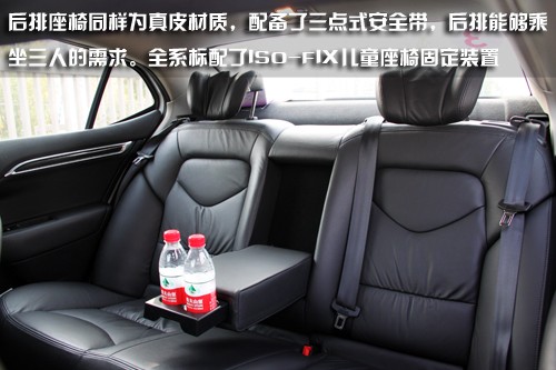 后排座椅同樣為真皮材質(zhì),并且配備了三點式安全帶,更符合中國國情,后排能夠乘坐三人的需求。并且全系標(biāo)配了ISO-FIX兒童座椅固定裝置,值得稱贊。座椅有29度傾斜,更符合人體工程學(xué)設(shè)計。值得一提的是,后排頭枕還能調(diào)整兩側(cè)包裹,更換不同的角度,靠著它睡覺很舒服。