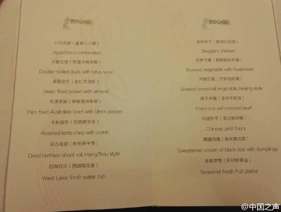 除了嚴(yán)肅的全球經(jīng)濟(jì)話題,參會(huì)領(lǐng)導(dǎo)人、企業(yè)家的衣食住行也備受關(guān)注。那么,參會(huì)領(lǐng)導(dǎo)人、企業(yè)家晚餐都吃啥呢?官方公布的菜單顯示,B20晚宴總計(jì)14道美食,主菜以浙江菜為主,包括了西湖菊花魚、杭州筍干卷、新派叫花雞等浙江經(jīng)典名菜。