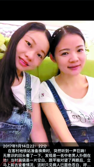 當日22時20分,廣東省第二人民醫(yī)院急診科護士唐翌葵和心內三科護士閔芊瑜正從3號線往8號線換乘。正當她們要上扶梯時,10多米開外一名中年男子突然倒下。唐翌葵、閔芊瑜和另外兩名市民趕緊過去幫忙,還有市民去呼叫地鐵工作人員。