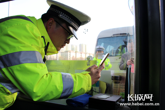 此外,記者在裕華高速口春運(yùn)安檢現(xiàn)場還看到,許多固定班線的客車上貼著一張二維碼。張博告訴記者,高速交警石家莊大隊(duì)在2016年春運(yùn)時(shí)研發(fā)了“客運(yùn)車核查平臺(tái)”。駐客運(yùn)站民警對途經(jīng)高速裕華路口班線客車信息(車輛狀況、乘客數(shù)量、司機(jī)乘務(wù)員情況、正常行駛情況、車輛違法記錄等)在離站前統(tǒng)一錄入核查平臺(tái)后,會(huì)自動(dòng)生成一張與該車對應(yīng)的紙質(zhì)二維碼,當(dāng)客車行至高速裕華口進(jìn)行檢查時(shí),民警只需使用手機(jī)專用的客車核查APP掃碼軟件掃描已粘貼的二維碼,車輛的所有信息會(huì)自動(dòng)顯示在手機(jī)上,從而提高安檢效率。