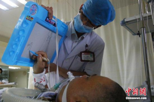 2017年1月27日,濱州醫(yī)學院附屬醫(yī)院急診科重癥監(jiān)護室醫(yī)生在給患者做檢查。中新網邱宇 攝