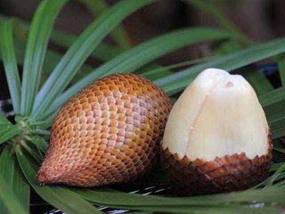 蛇皮果產(chǎn)于印尼等熱帶地區(qū),棕褐色的外皮上覆蓋一層密密麻麻的鱗片,像是蛇皮,因此形象地稱為"蛇皮果"。蛇皮果的果膠和鉀含量居水果之首,對身體十分有益。