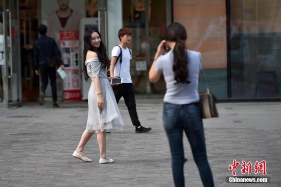 圖為北京三里屯街頭的姑娘小伙們換上夏裝出行。中新網(wǎng)記者 金碩 攝