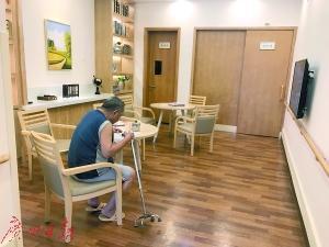 在這里,每位老人入院就建立健康檔案,每天早晚均有醫(yī)生護(hù)士兩次查房,一一記錄老人生命體征的監(jiān)測、呼吸、脈搏、進(jìn)食飲水等。此外,護(hù)士24小時值班,有些老人諸如糖尿病需要定時用藥,“樓下醫(yī)生開出藥方,由護(hù)士喂藥或打針!贬t(yī)院還提供康復(fù)訓(xùn)練,面向一些失能、失智老人。
