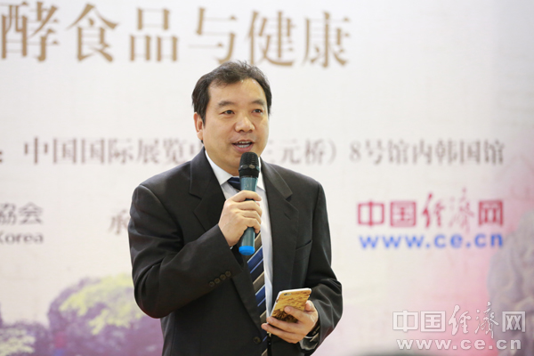 韓國世界泡菜研究所所長樸完洙致辭。(中國經(jīng)濟(jì)網(wǎng)記者 裴小閣 攝)