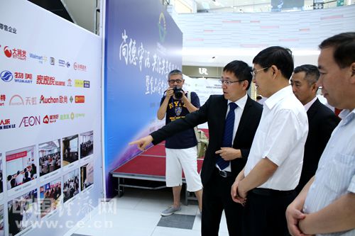 國家食品藥品監(jiān)督管理總局黨組成員、食品安全總監(jiān)郭文奇(左一)、中國連鎖協(xié)會(huì)秘書長裴亮(左二)與永旺超市相關(guān)負(fù)責(zé)人共同開啟2016年“食品安全宣傳周超市行”。中國經(jīng)濟(jì)網(wǎng)記者 韓肖/攝