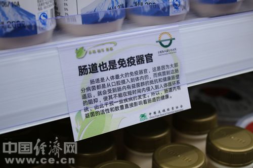 永旺超市低溫奶制品貨架區(qū)內(nèi),擺放的食品安全科普介紹。中國經(jīng)濟(jì)網(wǎng)記者 韓肖/攝